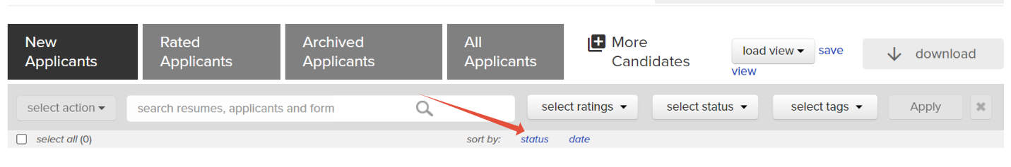 Step 1: Sort Applicants by Status